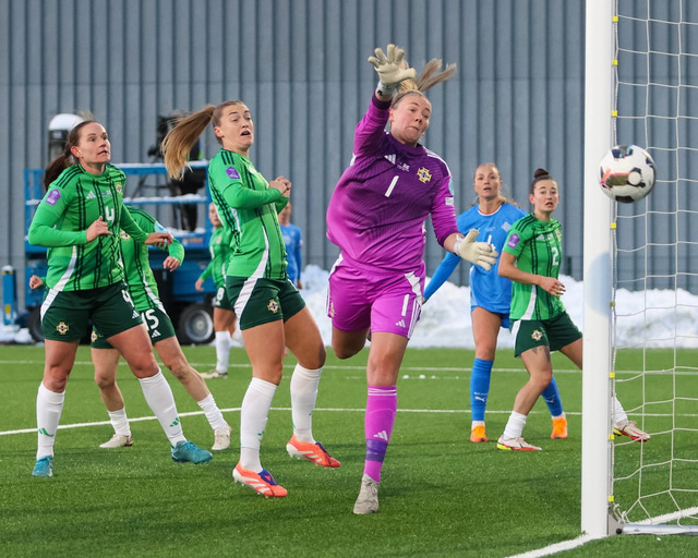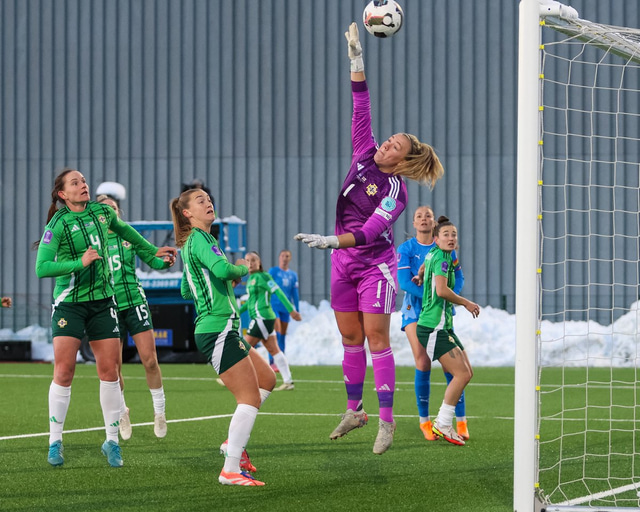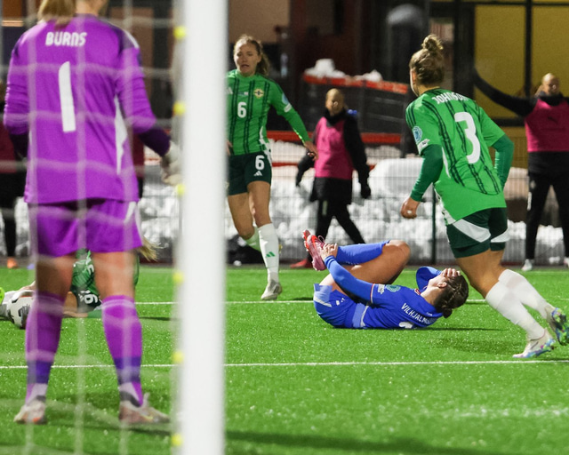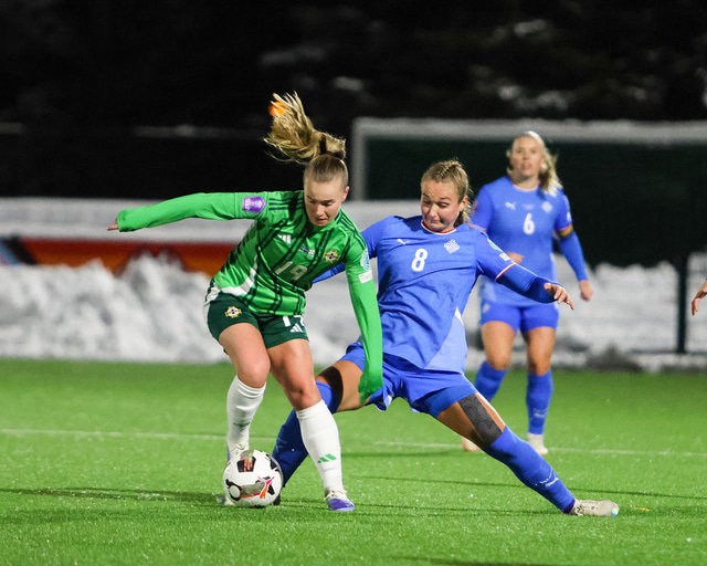 Íslenska kvennalandsliðið verður áfram í A-deild Þjóðadeildarinnar en liðið vann öruggan 3-0 sigur gegn Norður-Írlandi í Laugardalnum í gær. Haukur Gunnarsson var með myndavélina á Þróttarvelli.