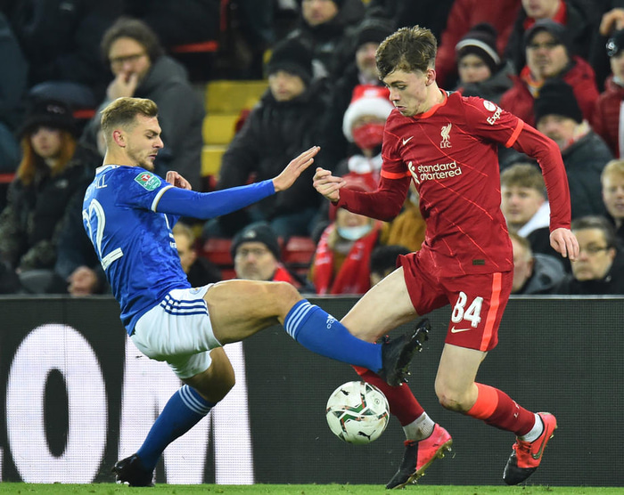 Enski varnarmaðurinn Conor Bradley spilaði sinn fyrsta Evrópuleik með Liverpool, en stjórinn segir hann svakalegt efni.