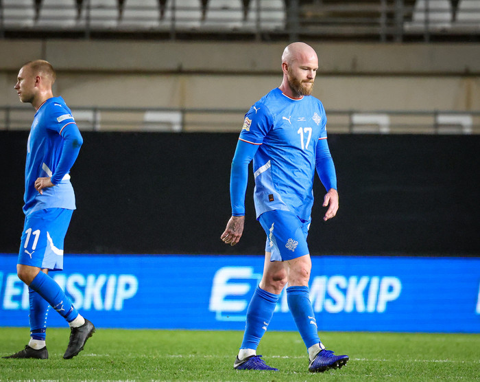 „Við vitum allir hversu mikil gæði Gylfi er með. Flott mark og góð afgreiðsla. Við vitum hvernig hann berst fyrir liðið, það hefur aldrei vantað upp á hjá honum," sagði Aron sem var kominn aftur með fyrirliðabandið í kvöld.