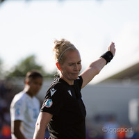 Hún fékk fyrst gula spjaldið en svo tók Lina Lehtovaara, dómari leiksins, spjaldið til baka.
