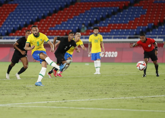 Brasilía og Japan tryggðu sig í dag inn í undanúrslitin á Ólympíuleikunum í Tókýo. Matheus Cunha skoraði sigurmark brasilíska liðsins.