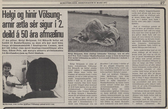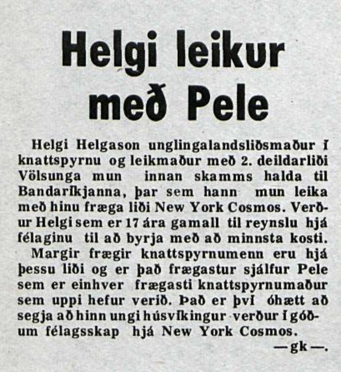 Það vita færri en ungur íslenskur drengur æfði með Pele árið 1977. Það var Húsvíkingurinn Helgi Helgason sem fékk að fara á reynsluæfingar hjá New York Cosmos í Bandaríkjunum þá aðeins 17 ára gamall.
